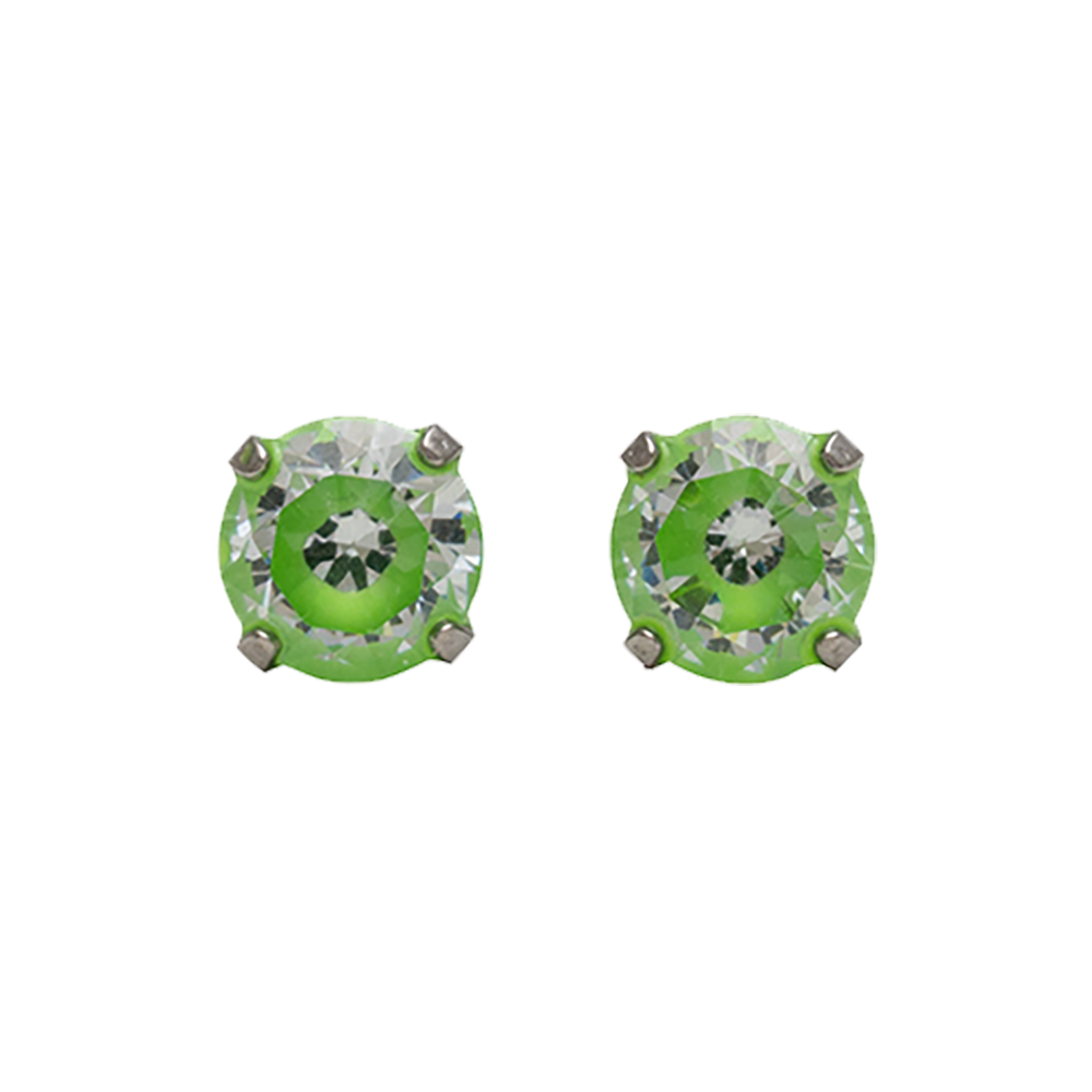 Cubic Zirconia Neon Green Allergy Free Stainless Steel Ear Studs | Ideal for every day wear